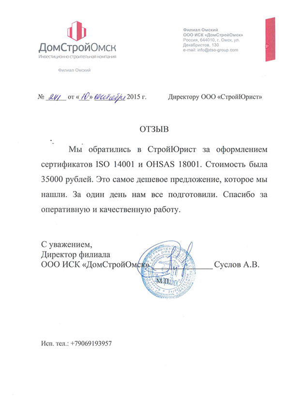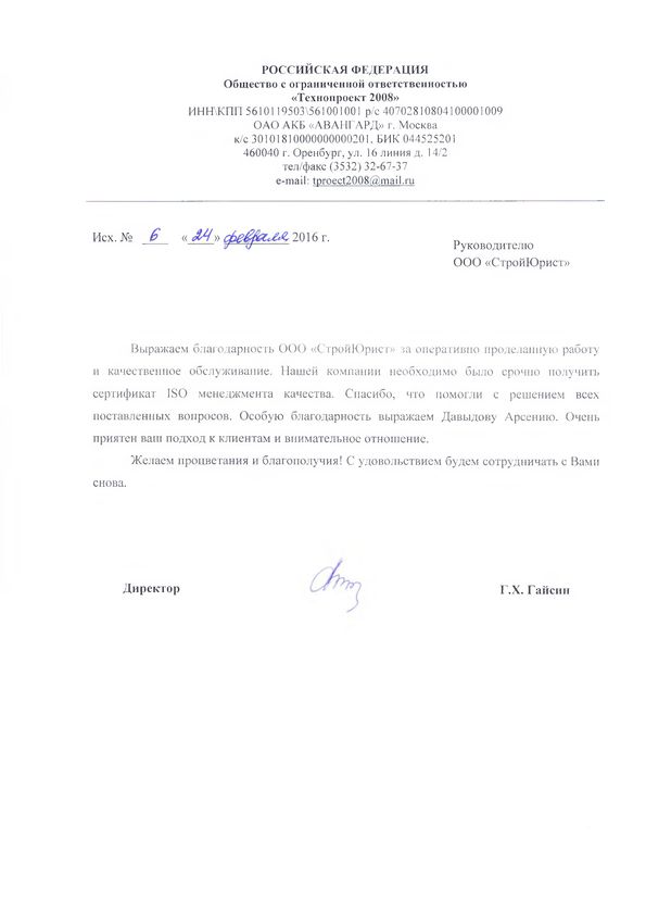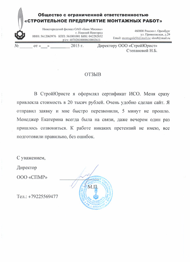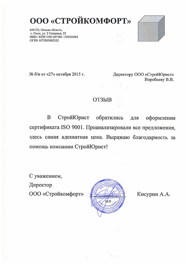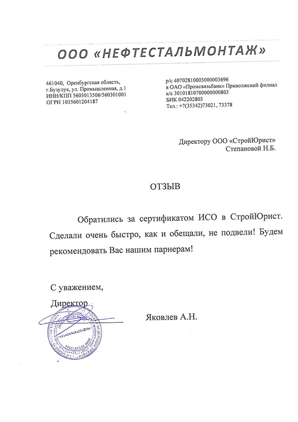 Отзывы клиентов "СтройЮрист" по ISO в Алатыре