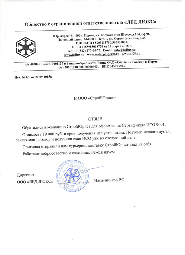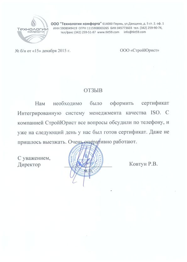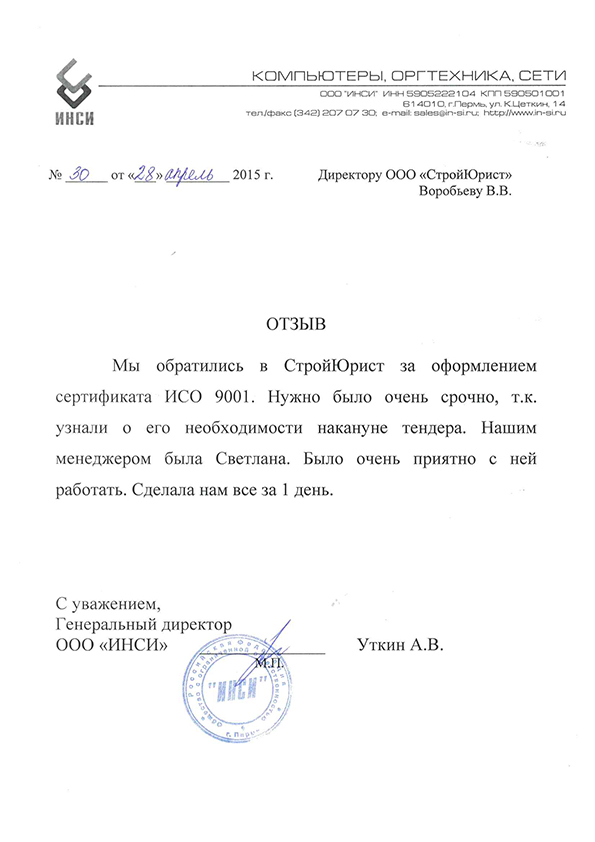 Отзывы клиентов "СтройЮрист" по ISO в Алатыре