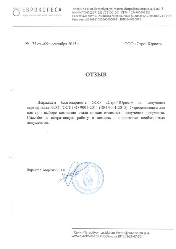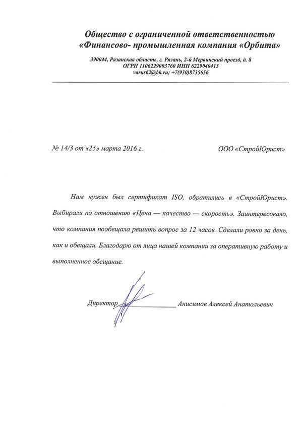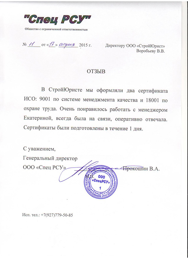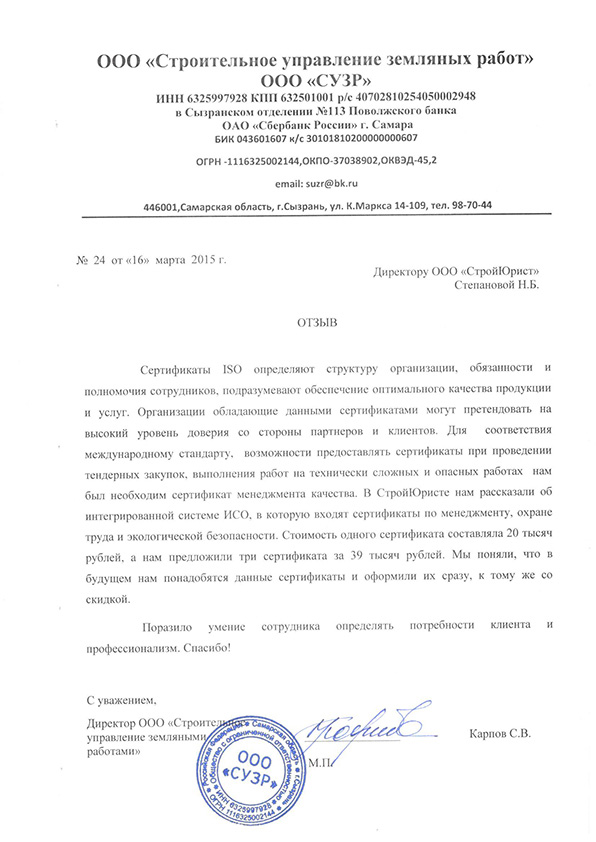 Отзывы клиентов "СтройЮрист" по ISO в Алатыре