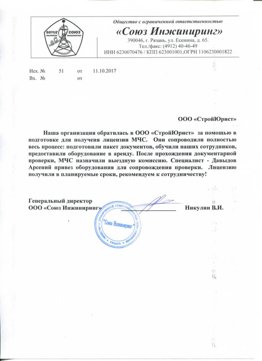 Отзывы клиентов "СтройЮрист" по лицензированию МЧС в Алатыре