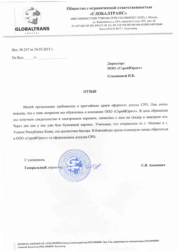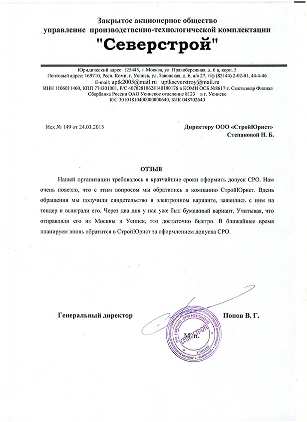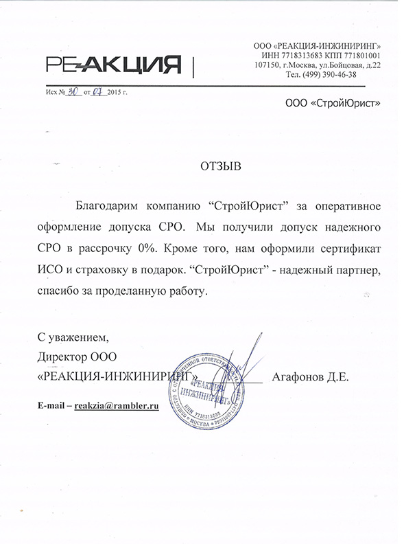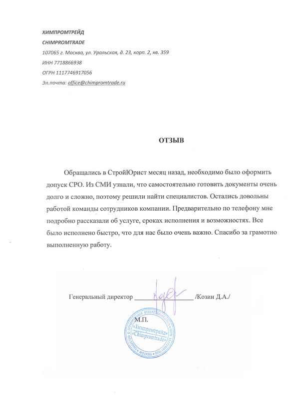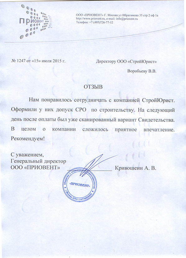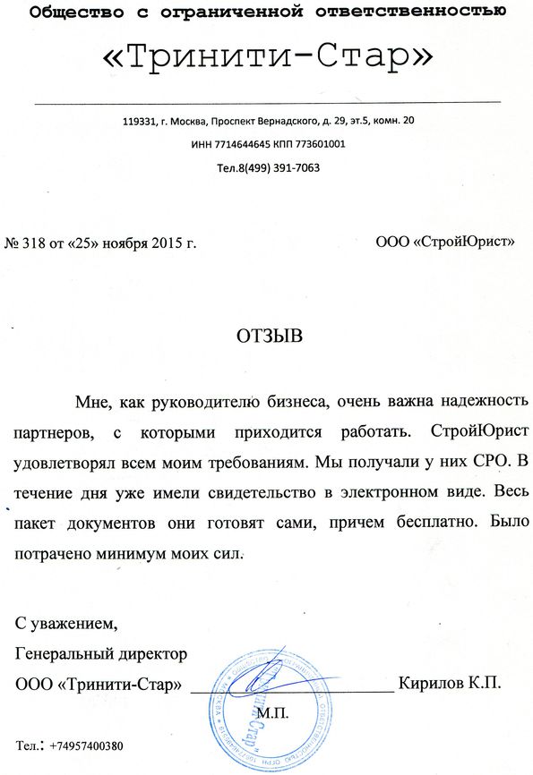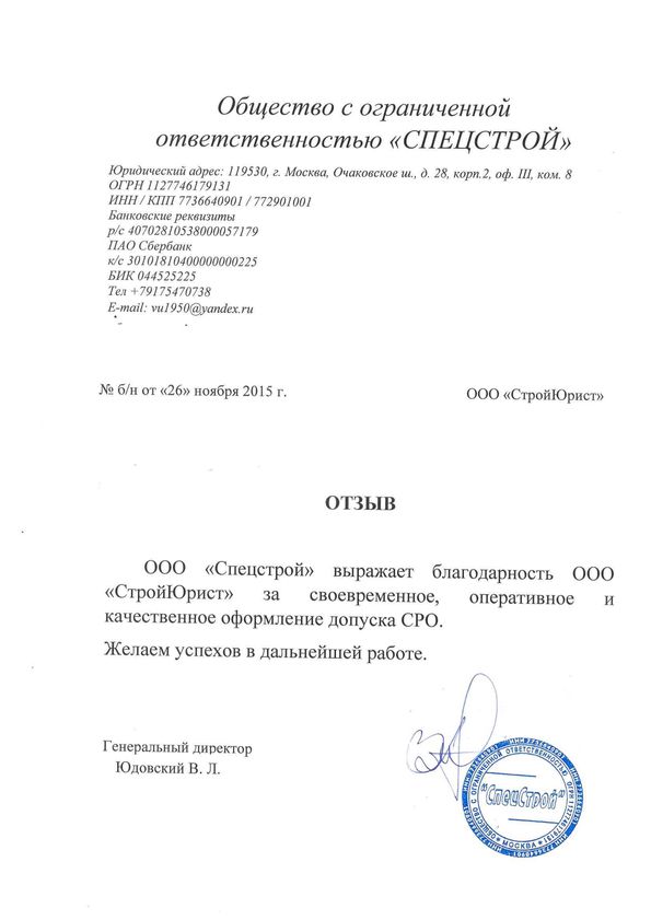 Отзывы клиентов "СтройЮрист" по вступлению в СРО в Алатыре