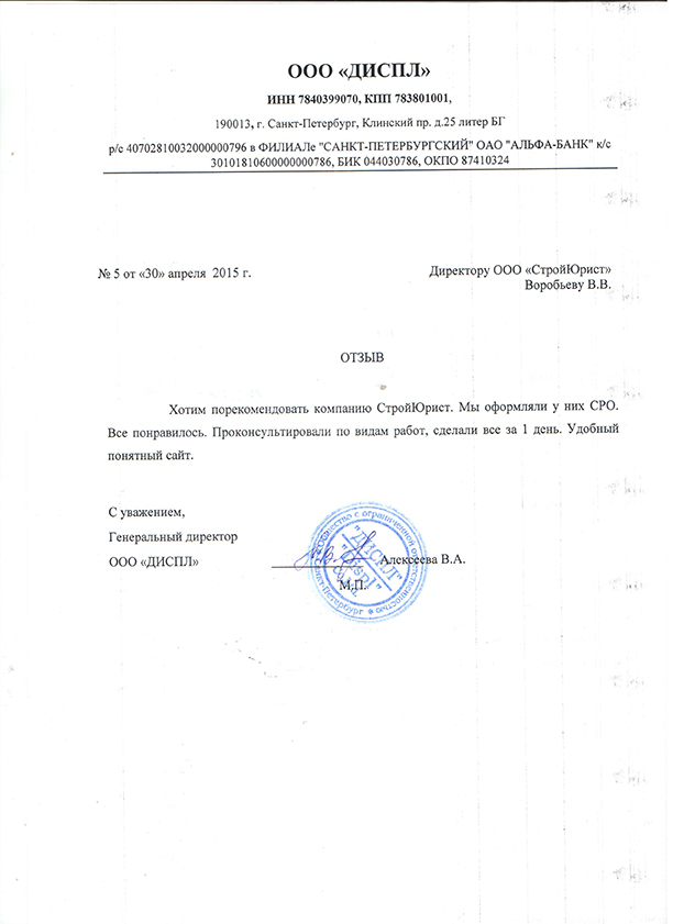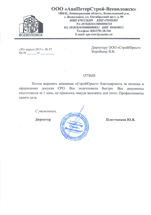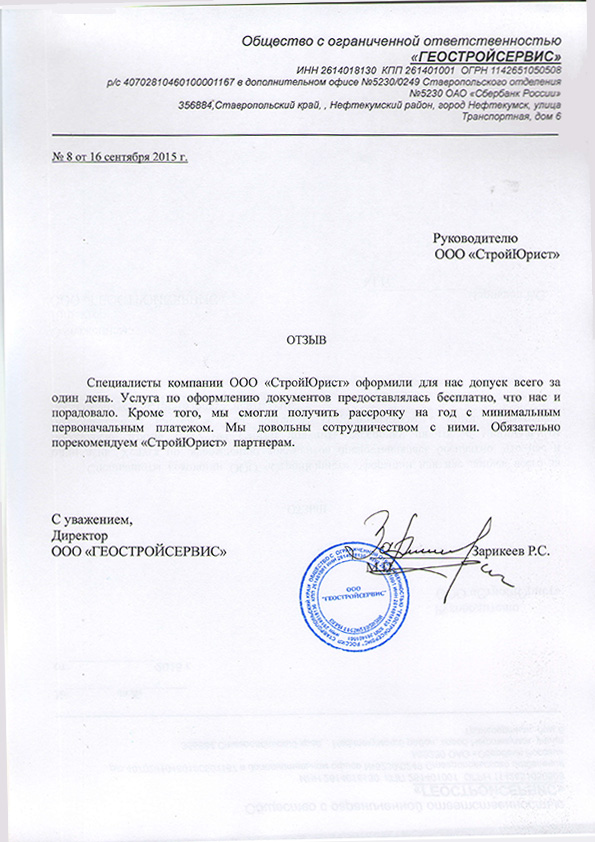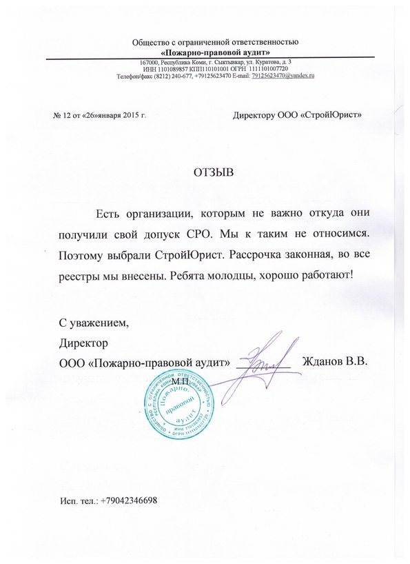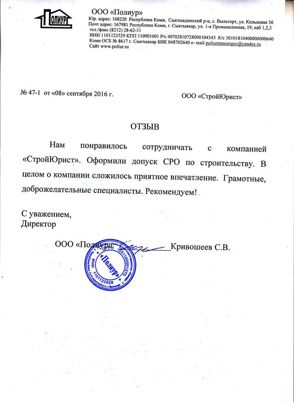 Отзывы клиентов "СтройЮрист" по вступлению в СРО в Алатыре