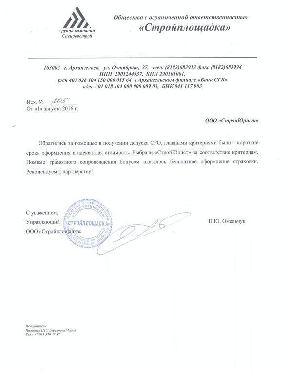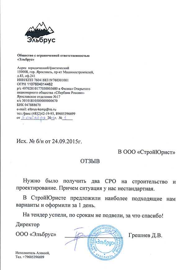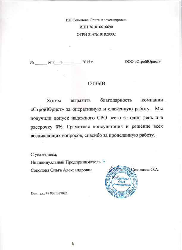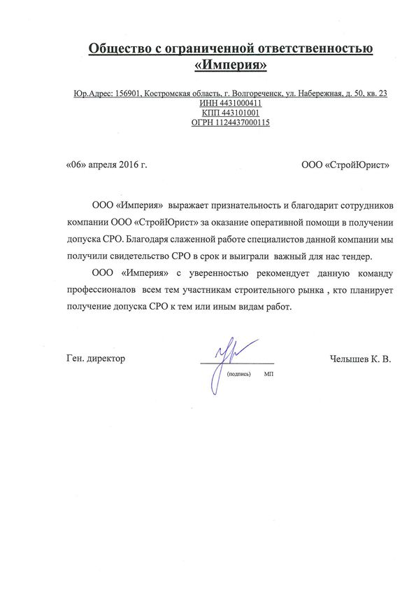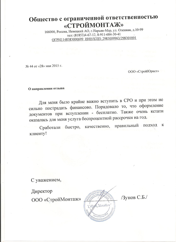Отзывы клиентов "СтройЮрист" по вступлению в СРО в Алатыре