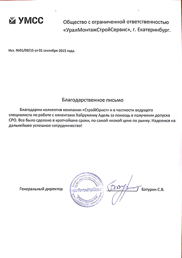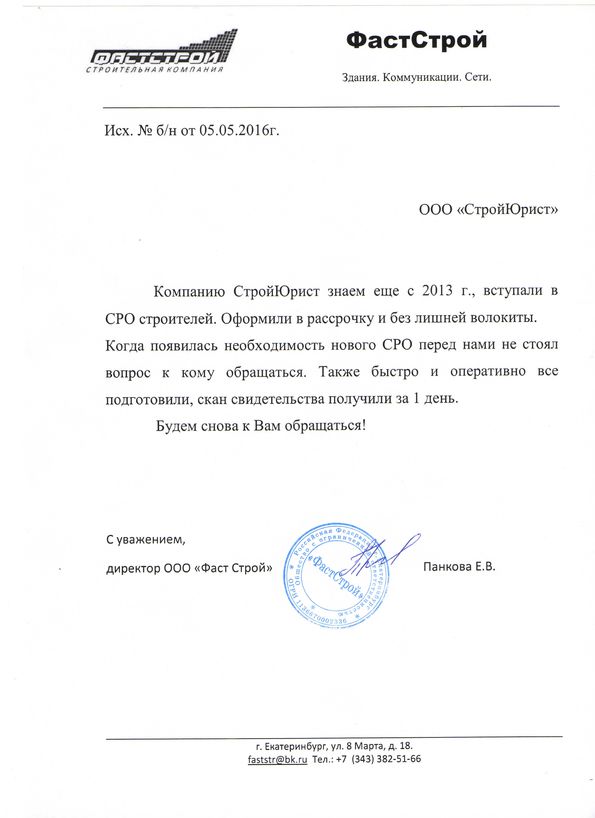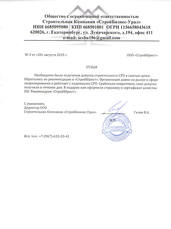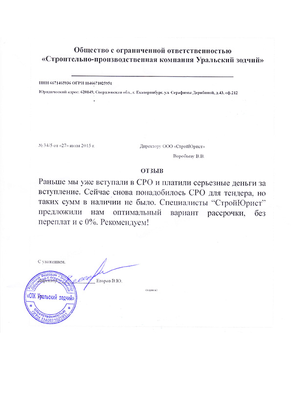 Отзывы клиентов "СтройЮрист" по вступлению в СРО в Алатыре