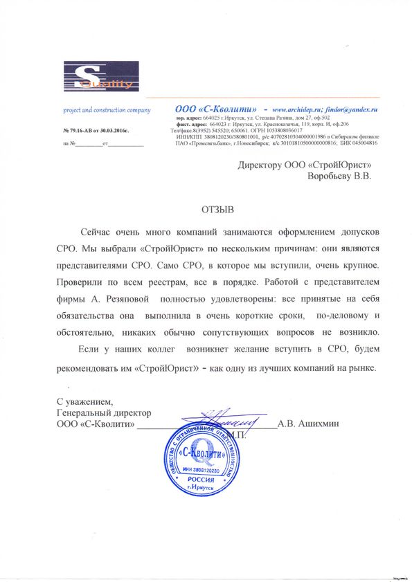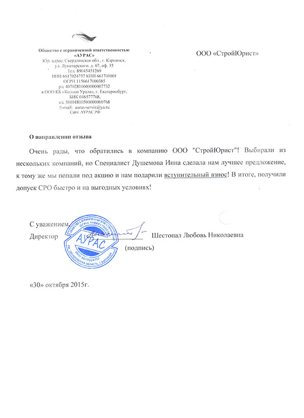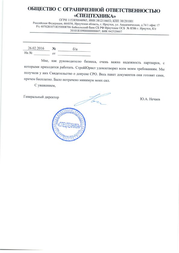 Отзывы клиентов "СтройЮрист" по вступлению в СРО в Алатыре