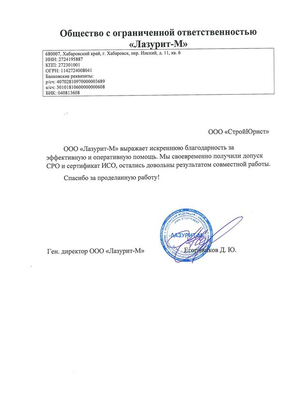 Отзывы клиентов "СтройЮрист" по вступлению в СРО в Алатыре